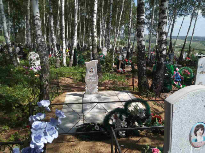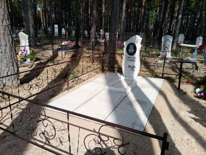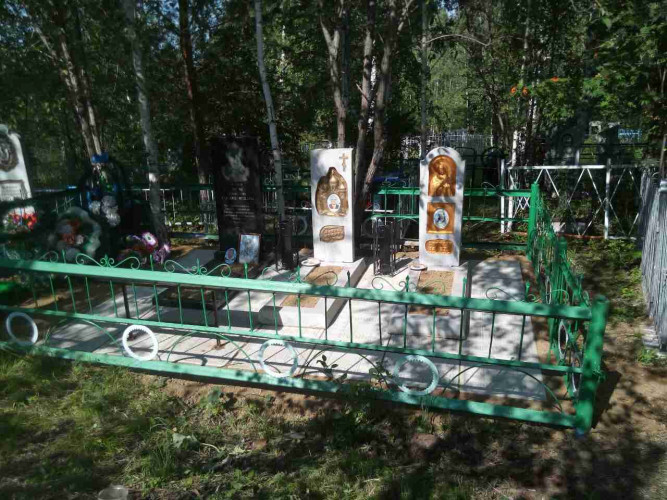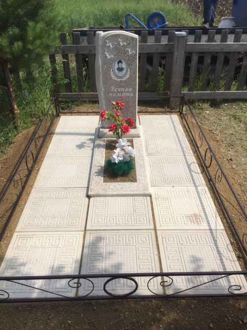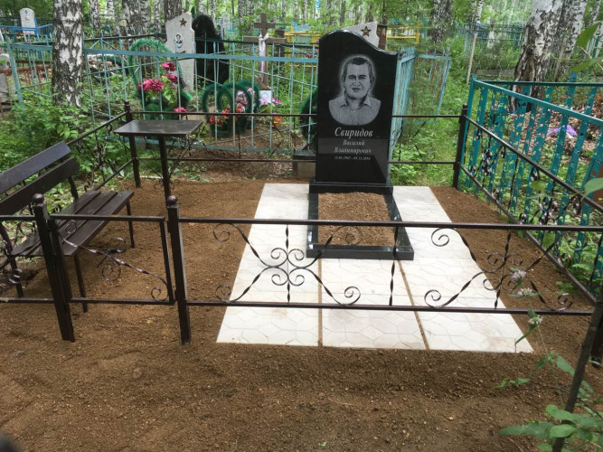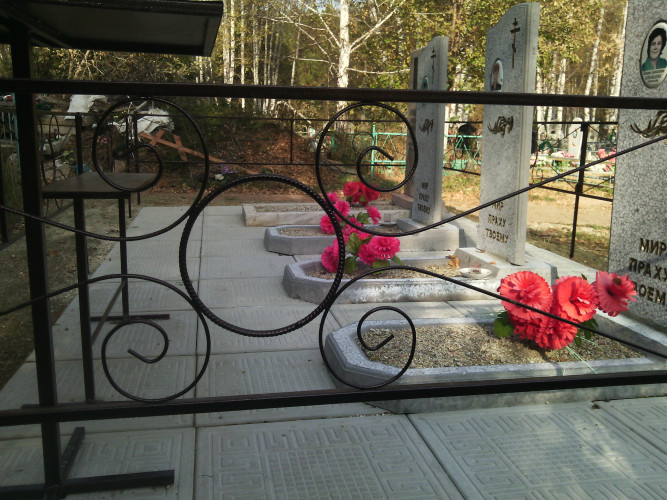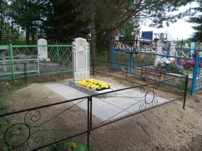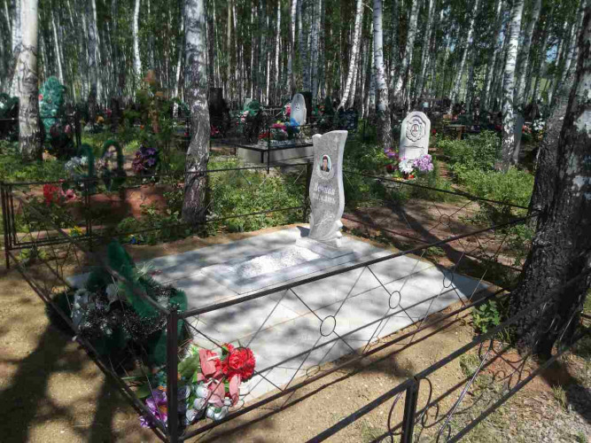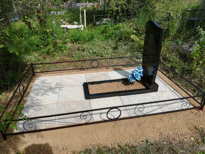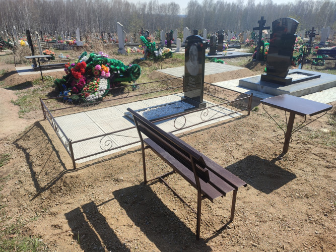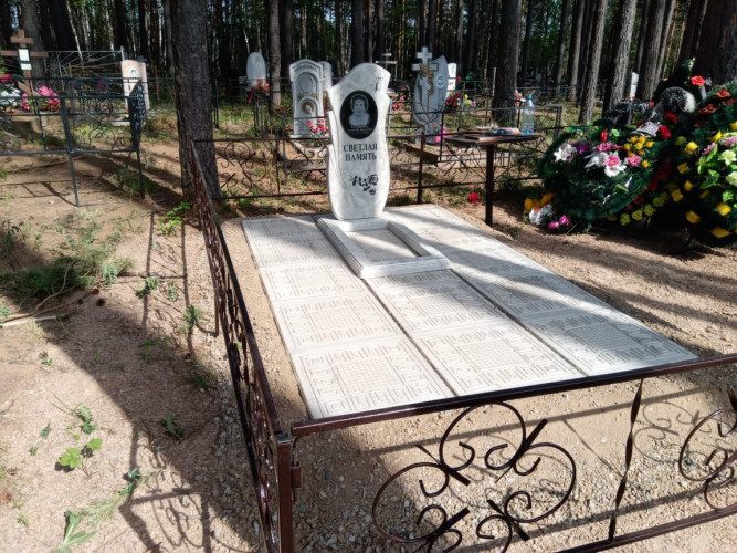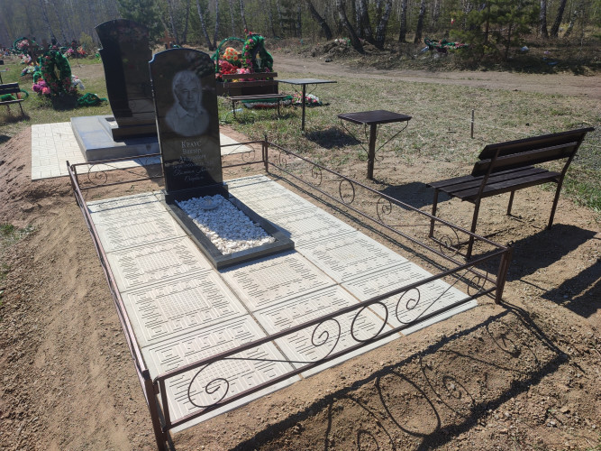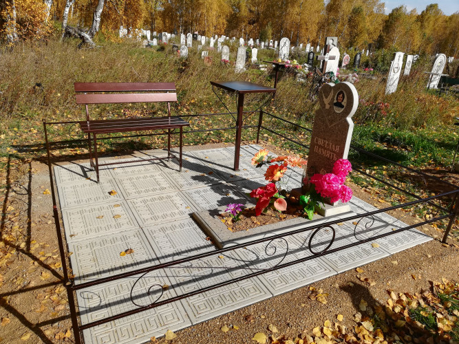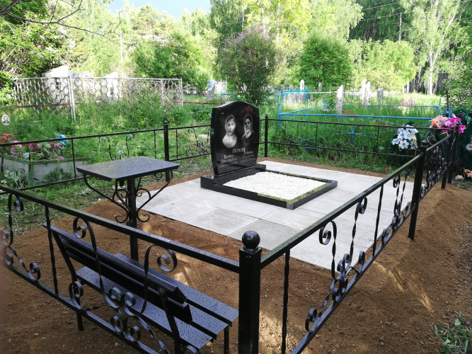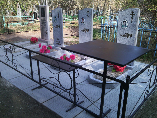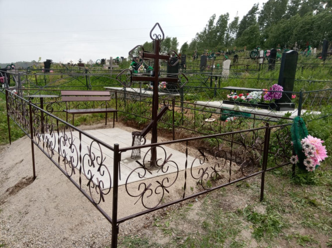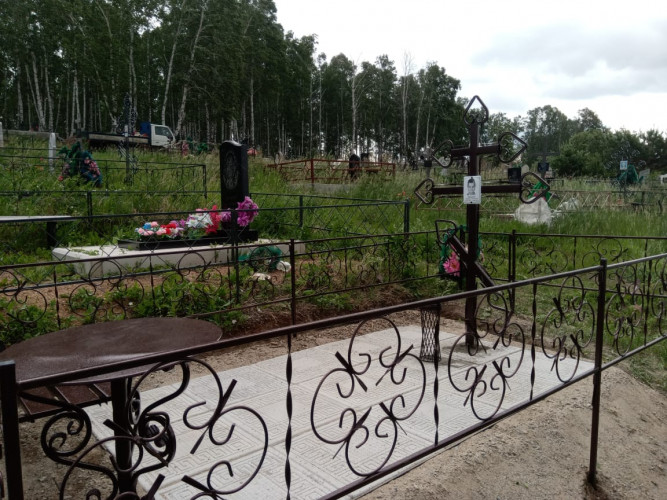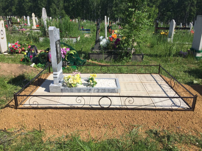 более полноценный вид данному надгробию придает оградка, изготовленная специально по размеру и покрашенная полимерно порошковой краской.
